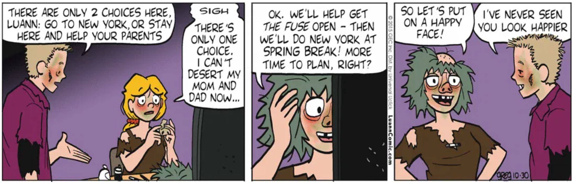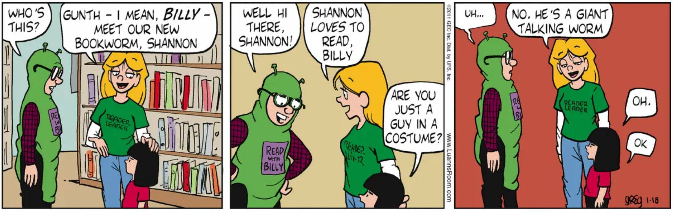 Dear Reader, If you live in the San Diego area or are coming to San Diego for Comic-Con, you have two special opportunities this month to see us (Greg and Karen) LIVE as we present "From Process to Finished Product: How Luann Gets Made" a behind-the-scenes look at the messy, miraculous back-and-forth behind a week of LUANN. We'll be sharing actual drafts of both text and artwork to show how much an idea can evolve from start to finish. See details for dates below! We heard from a few of you...