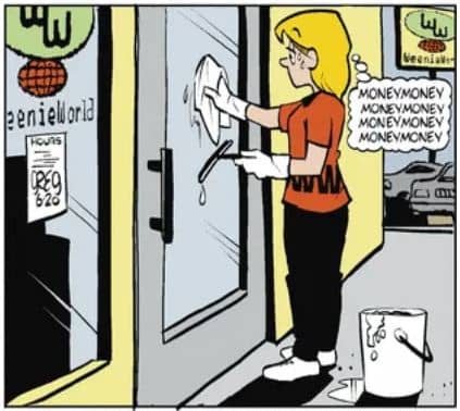 Wanting to make more money (to maybe move out), Luann took a job at Weenie World.