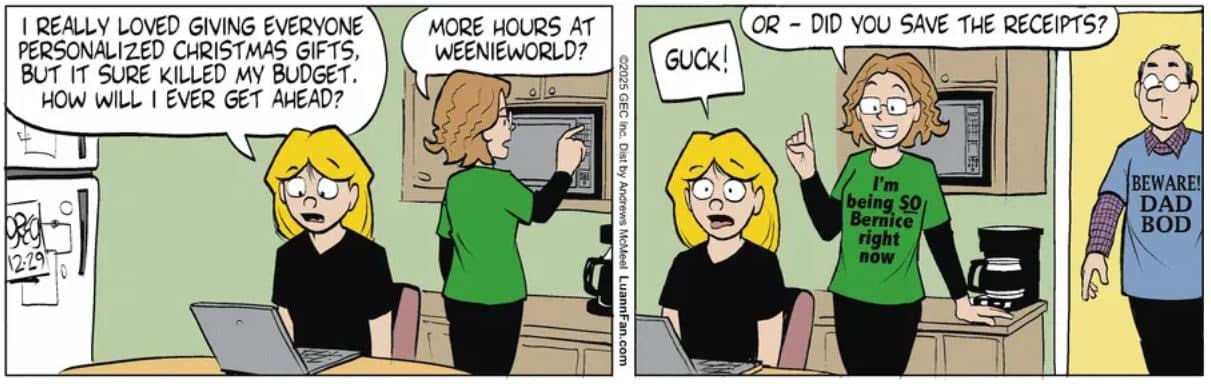 Happy end of the year—and happy New Year, too! As they say, the days are long but the years are short, and 2025 was no exception. For many of us, it felt packed to the brim (or well over the brim), so we hope this transition into 2026 brings a little breathing room, a little brightness, and plenty to smile about. We hope your days were lightened along the way by Luann and the whole cast of characters.